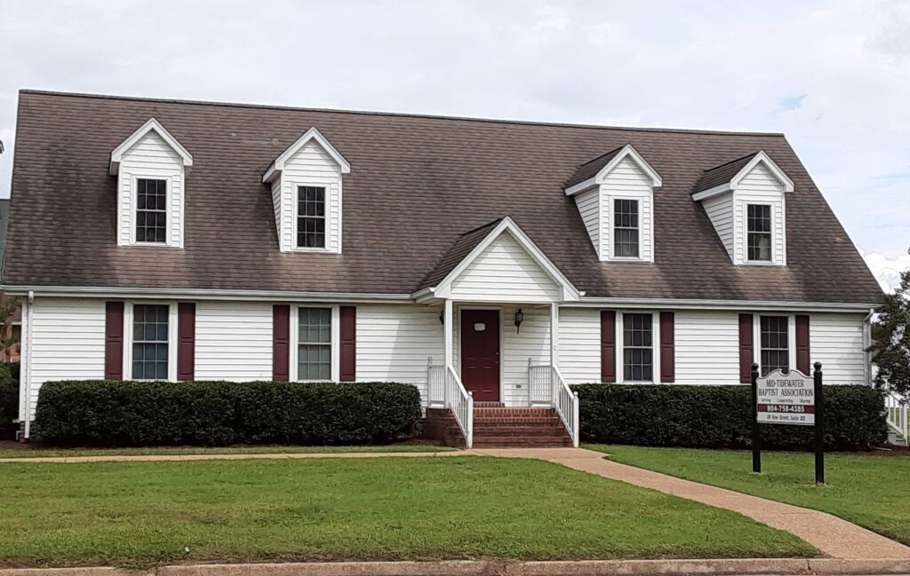 The Mid-Tidewater Baptist Association of Virginia, Inc. office, as of May 1, 2025, is located at 18 New Street, Saluda, VA 23149 in the heart of downtown Saluda, VA. Come visit with us Mondays through Wednesdays, 8:30 am to 3:00 pm.